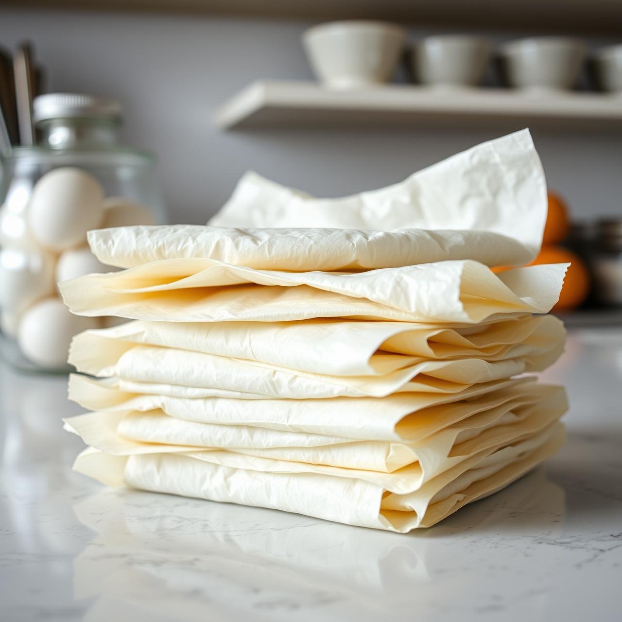 2. Stack the wraps, placing a small square of parchment paper or wax paper between each one. This is essential to prevent them from fusing together.