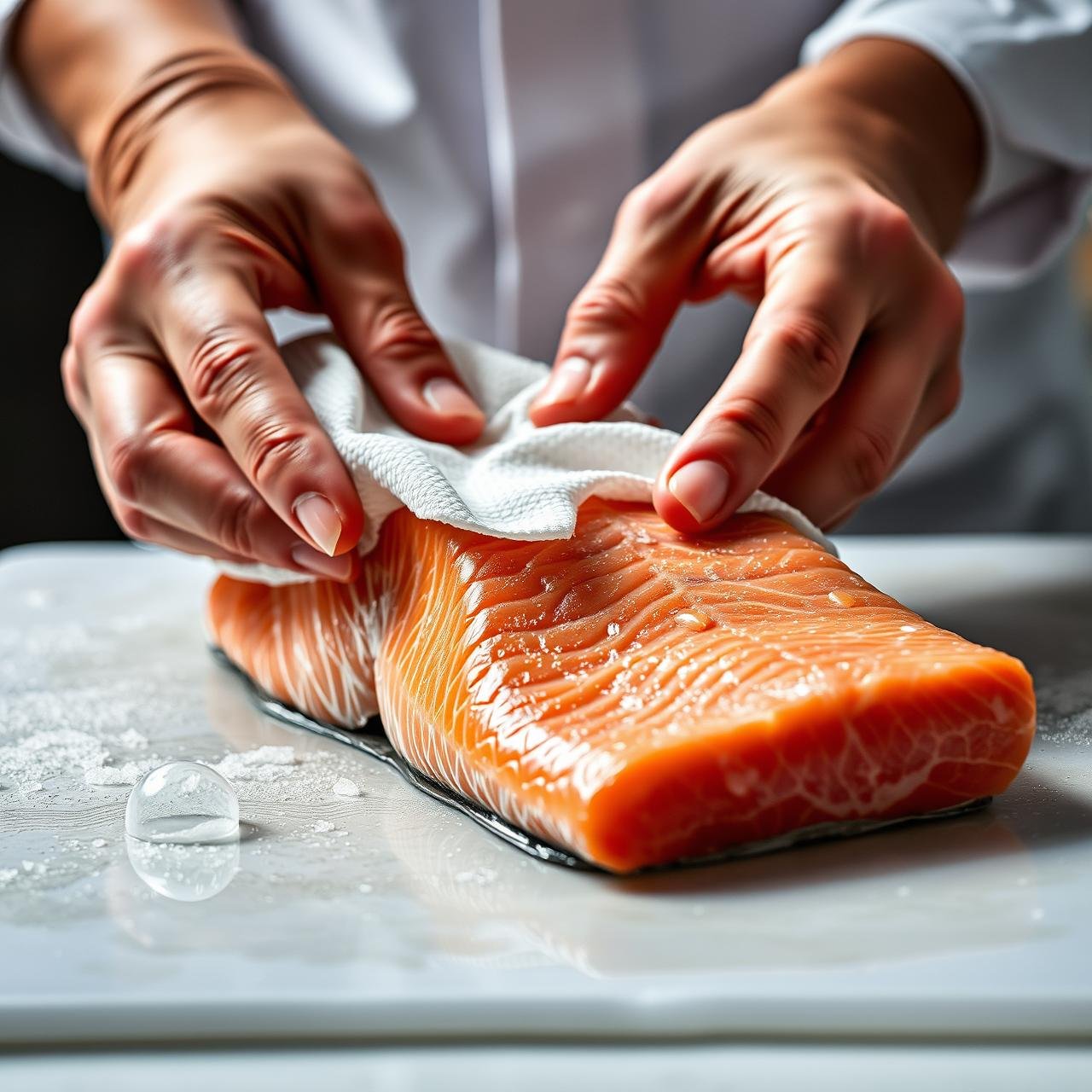 This is a critical, yet often overlooked, step that separates amateur from chef-like results. Moisture is the enemy of crispiness. By taking a moment to properly prepare the salmon fillets, you are setting the stage for a superior texture.