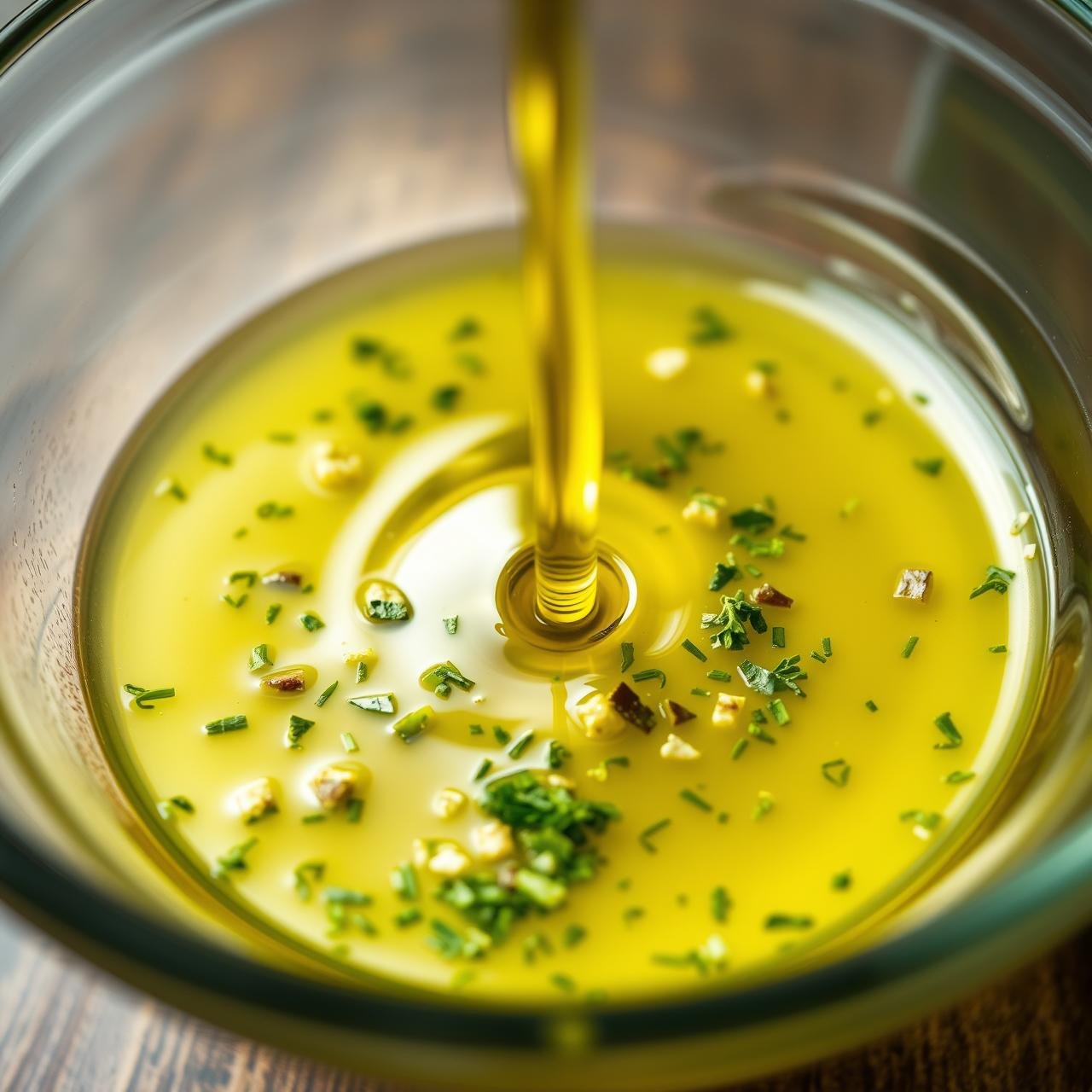 - Using a small whisk or a fork, vigorously mix all the ingredients together until they are well emulsified. The mixture should be fragrant and slightly thickened. Take a moment to inhale the incredible aroma—it’s the promise of the deliciousness to come.