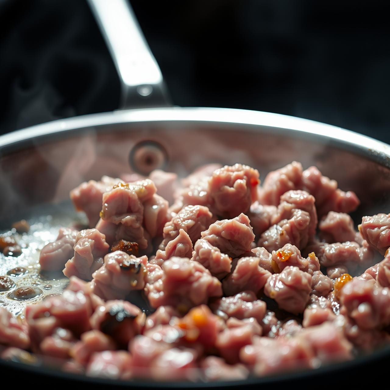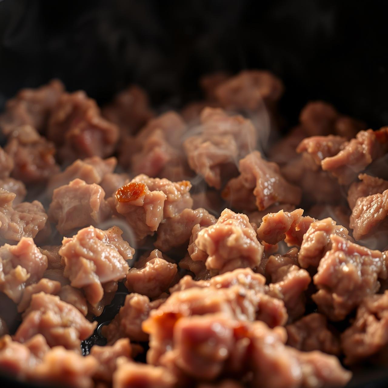 - Let the meat cook, stirring only occasionally, for about 5-7 minutes. You want to allow it to sit on the hot surface long enough to develop a deep brown crust. Avoid constantly stirring, which will steam the meat rather than sear it.