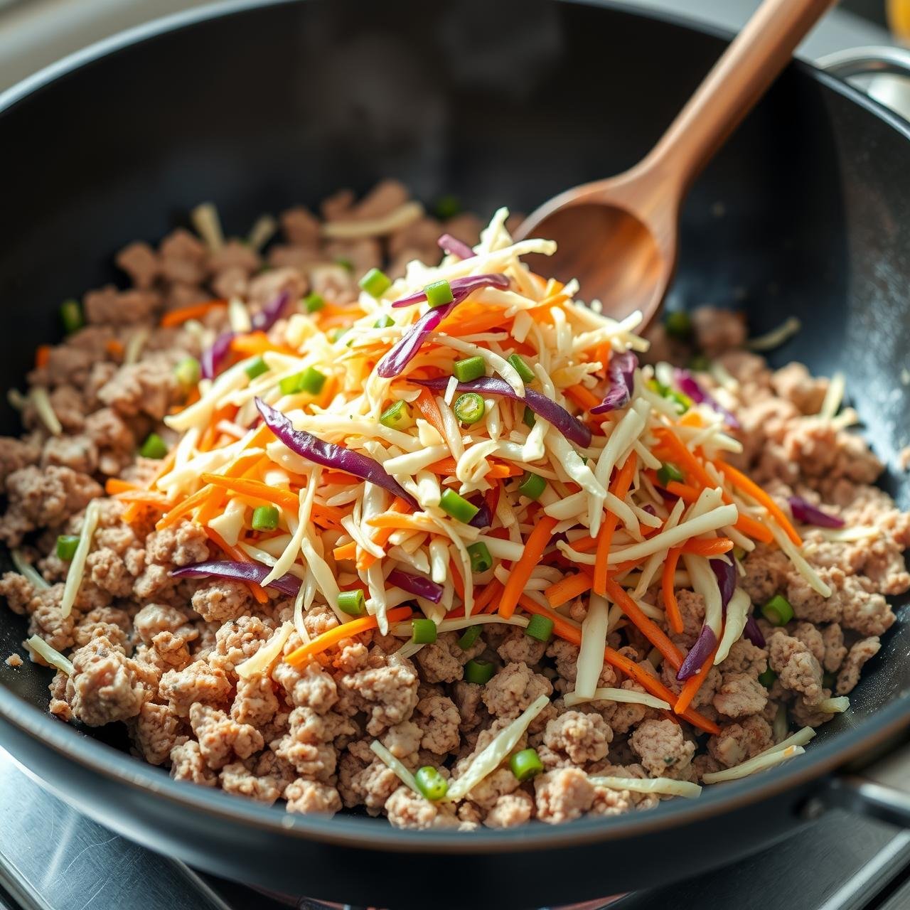The vegetable base is what gives this dish its signature crunch, volume, and nutritional punch. The combination of cabbage and carrots is classic, providing a slight sweetness and a satisfying texture that holds up well to cooking.