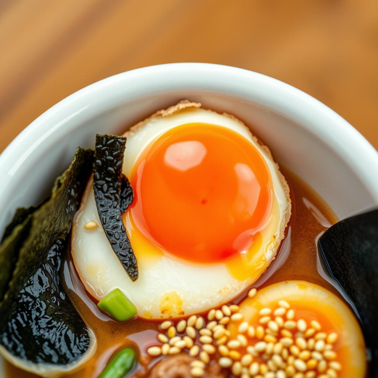 • The Jammy Egg: Place a halved soft-boiled egg in each bowl, yolk-side up. The creamy yolk will enrich the broth as you eat.