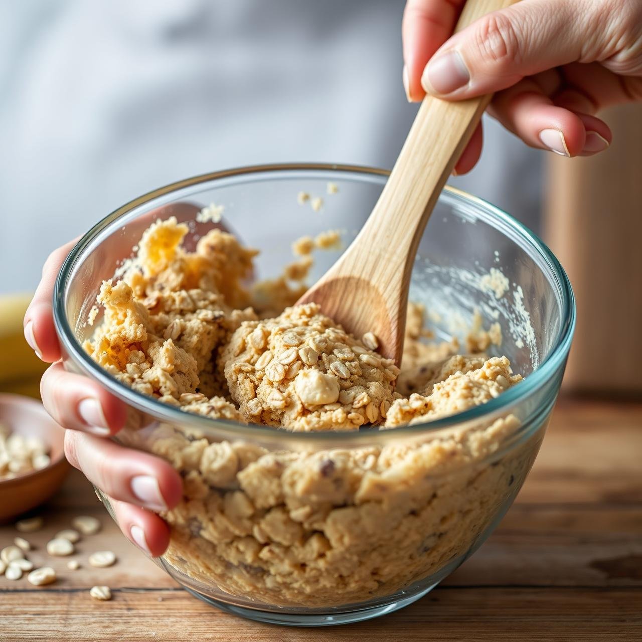 - Incorporate the Oats: Add the 1 cup of rolled oats to the mashed banana. If you are using cinnamon, add the 1/2 teaspoon now. Use a spatula or wooden spoon to mix everything together until the oats are evenly coated and a thick, sticky dough forms. Do not overmix; just combine until everything is incorporated.