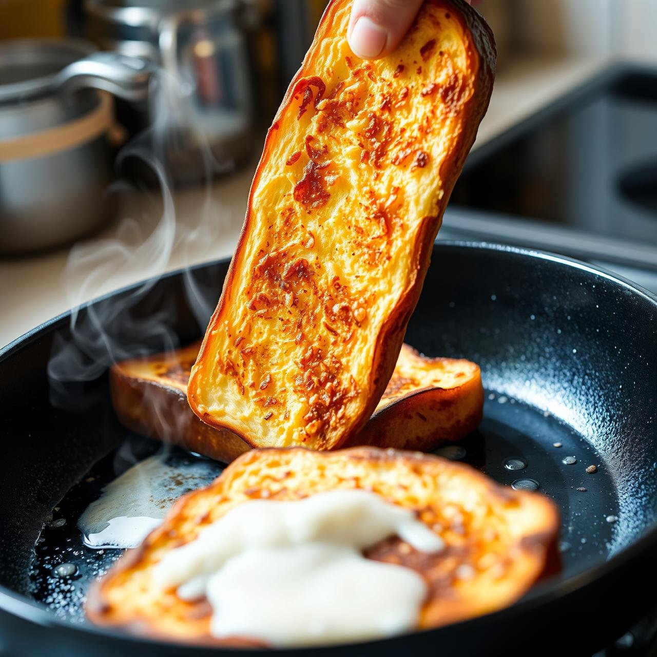 Place your non-stick skillet over medium heat. You can add a light spray of cooking oil if needed. Once the pan is hot, carefully place the soaked bread slices onto the skillet. Cook for 3-4 minutes per side. The key is to let a deep, golden-brown crust form before flipping. A well-formed crust provides structure and a delightful texture.