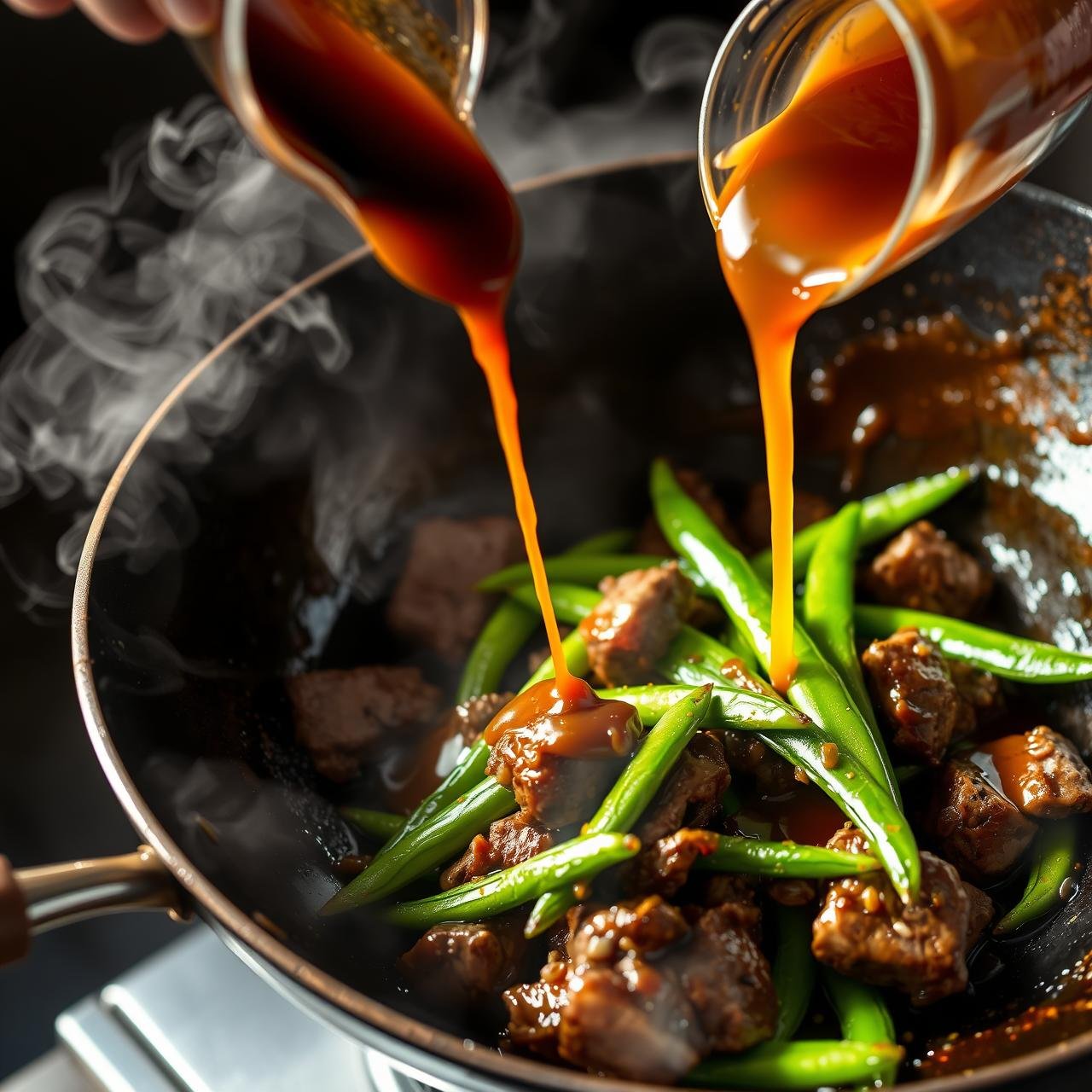 6. Bring It All Together: Return the seared beef and any accumulated juices to the wok. Give the sauce a final quick whisk and pour it all over the ingredients. Stir and toss everything to coat. The sauce will bubble and thicken almost immediately, clinging to the beef and vegetables in a beautiful, glossy glaze. Cook for 1 minute more for the flavors to meld.