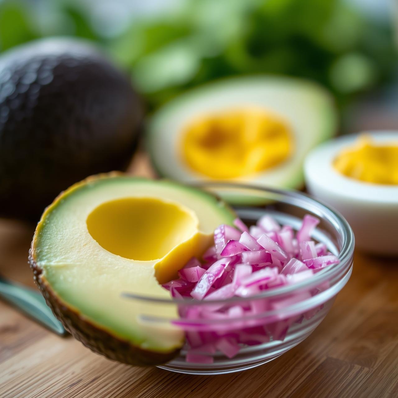 2. Incorporate Flavor: To the mashed avocado, add the diced red onion, fresh dill (or chives), Dijon mustard (if using), salt, and pepper. Stir with a spatula until everything is evenly combined. This step infuses the creamy base with flavor before the eggs are added.