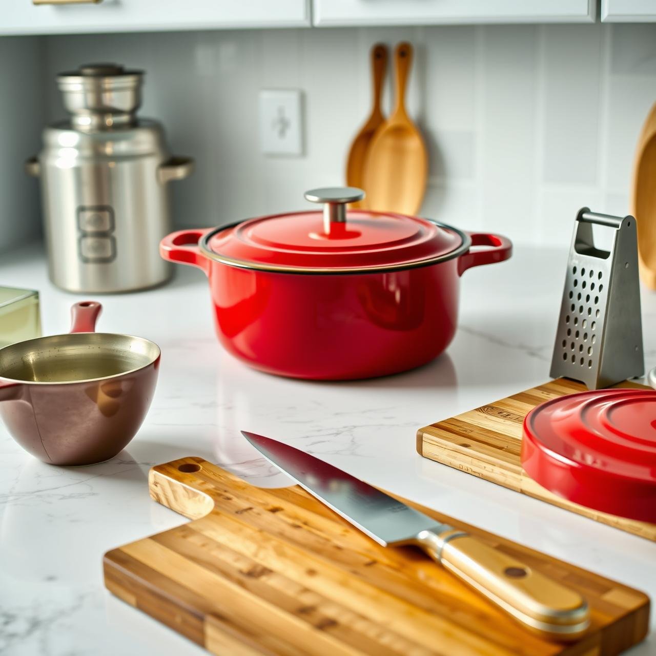 | Sharp Chef’s Knife & Cutting Board | Prepping vegetables | Good knife skills make the prep work faster and safer. A stable cutting board is a must. |