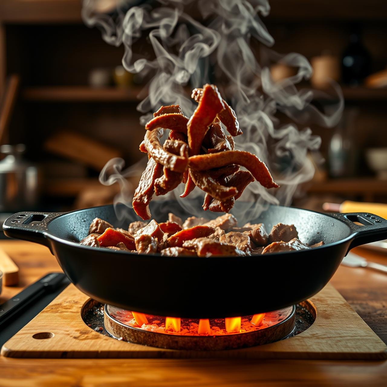 Pat the thinly sliced beef completely dry with paper towels; this is crucial for getting a good sear. Season generously with salt and pepper. Heat the oil in your large skillet over medium-high heat until it shimmers. Working in 2-3 batches to avoid overcrowding, add the beef in a single layer and sear for 60-90 seconds per side, just until a golden-brown crust forms. The inside should still be rare. Remove the seared beef to a clean plate and set aside.