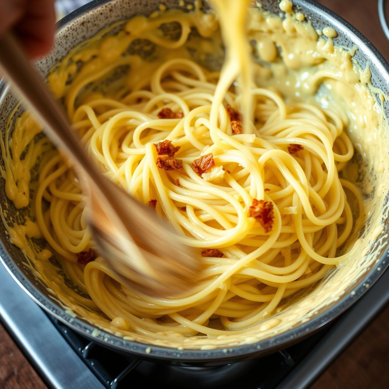 The number one fear when making Carbonara is ending up with a grainy, scrambled mess. The secret is temperature control. Always, always, always add the egg mixture off the heat. The pan should be hot enough to cook the sauce, but not so hot that it seizes the eggs instantly. Tossing constantly and quickly is just as important, as it keeps the eggs moving and allows them to emulsify into a sauce rather than cook into clumps.
