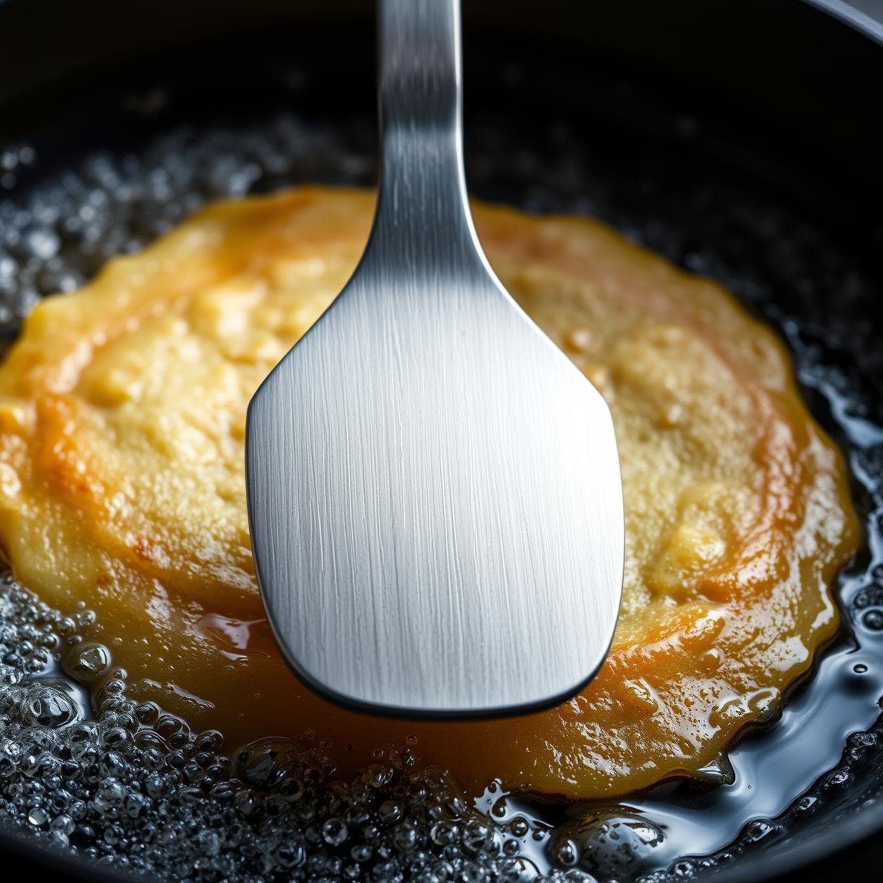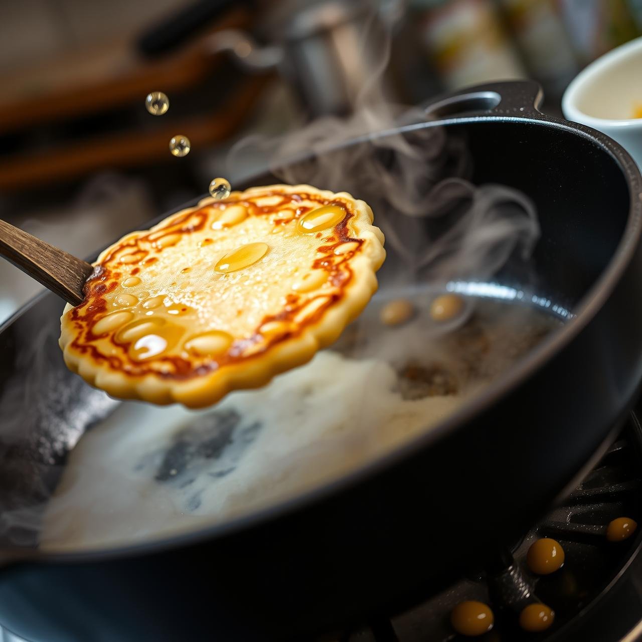 5. The Crisp-Inducing Flip: Cook for about 3-4 minutes per side, until the edges are crispy and the bottom is a deep golden brown. Using your spatula, gently press down on the pancake as it cooks to create a thinner, crispier result. Flip carefully and cook the other side for another 3-4 minutes until equally golden and cooked through.