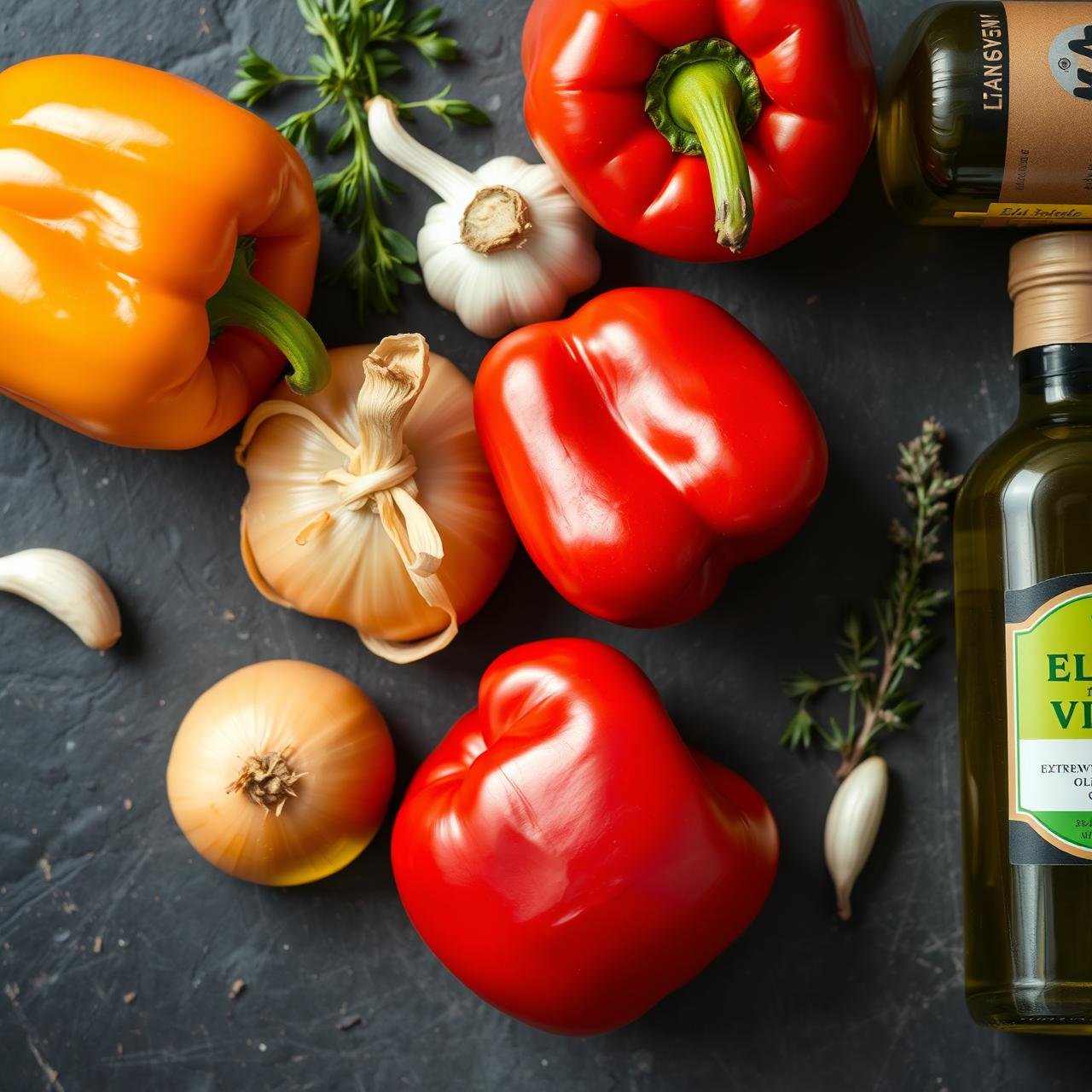 • 4 large red bell peppers (about 2 lbs), vibrant and firm