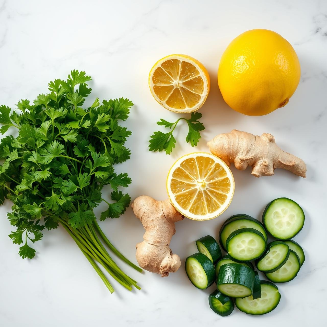 A chef’s note on selection: Look for parsley with deep green, vibrant leaves—avoid any that are yellowed or wilted. Your lemon should be firm and heavy for its size, indicating it’s full of juice. The ginger root should be firm and smooth, not shriveled, and the cucumber should be firm to the touch without any soft spots. The freshness is what makes this drink sing.