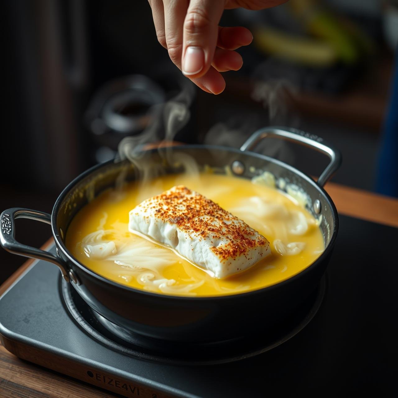 Gently nestle the seasoned cod fillets into the simmering broth, ensuring they are mostly submerged. Reduce the heat to low, cover the skillet with its lid, and let the fish poach for 6-8 minutes. The exact time will depend on the thickness of your fillets. The cod is done when it is opaque and flakes easily with a fork.