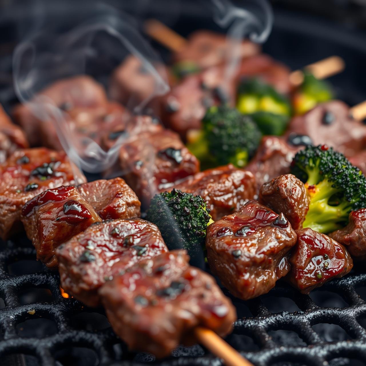 Grilled Beef And Broccoli Kebabs With Garlic Marinade (No Fluff)
