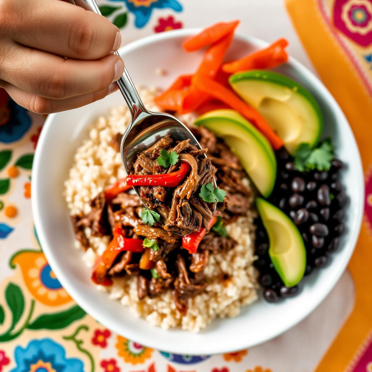 • Brown Rice or Quinoa: Serve a generous scoop of Ropa Vieja over a bed of fluffy brown rice or protein-packed quinoa. The grains are perfect for soaking up every last drop of the savory sauce.