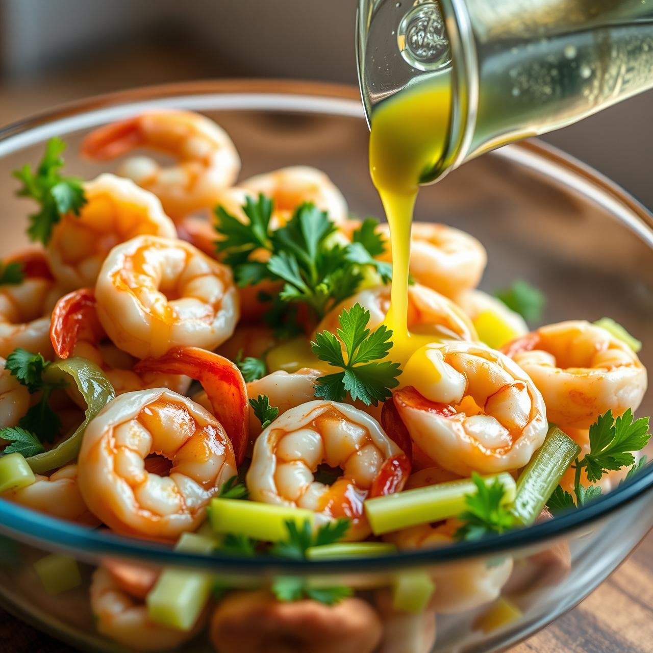 - Combine and Marinate: In your large mixing bowl, combine the chilled, dry seafood, the diced celery, and the chopped parsley. Pour the lemon garlic dressing over the top and toss gently to coat everything evenly. For the best flavor, cover the bowl and let the salad marinate in the refrigerator for at least 30 minutes, or up to 4 hours. This allows the flavors to meld and penetrate the seafood.