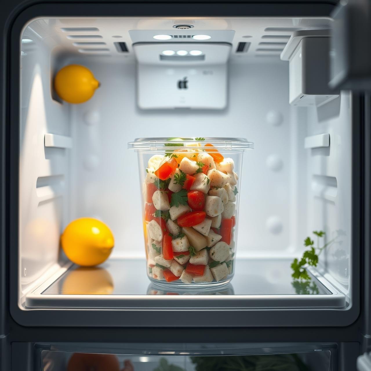 To store, transfer any leftover seafood salad to an airtight container. Glass containers are preferable as they don’t absorb odors. Ensure the lid is sealed tightly and place it in the coldest part of your refrigerator immediately.
