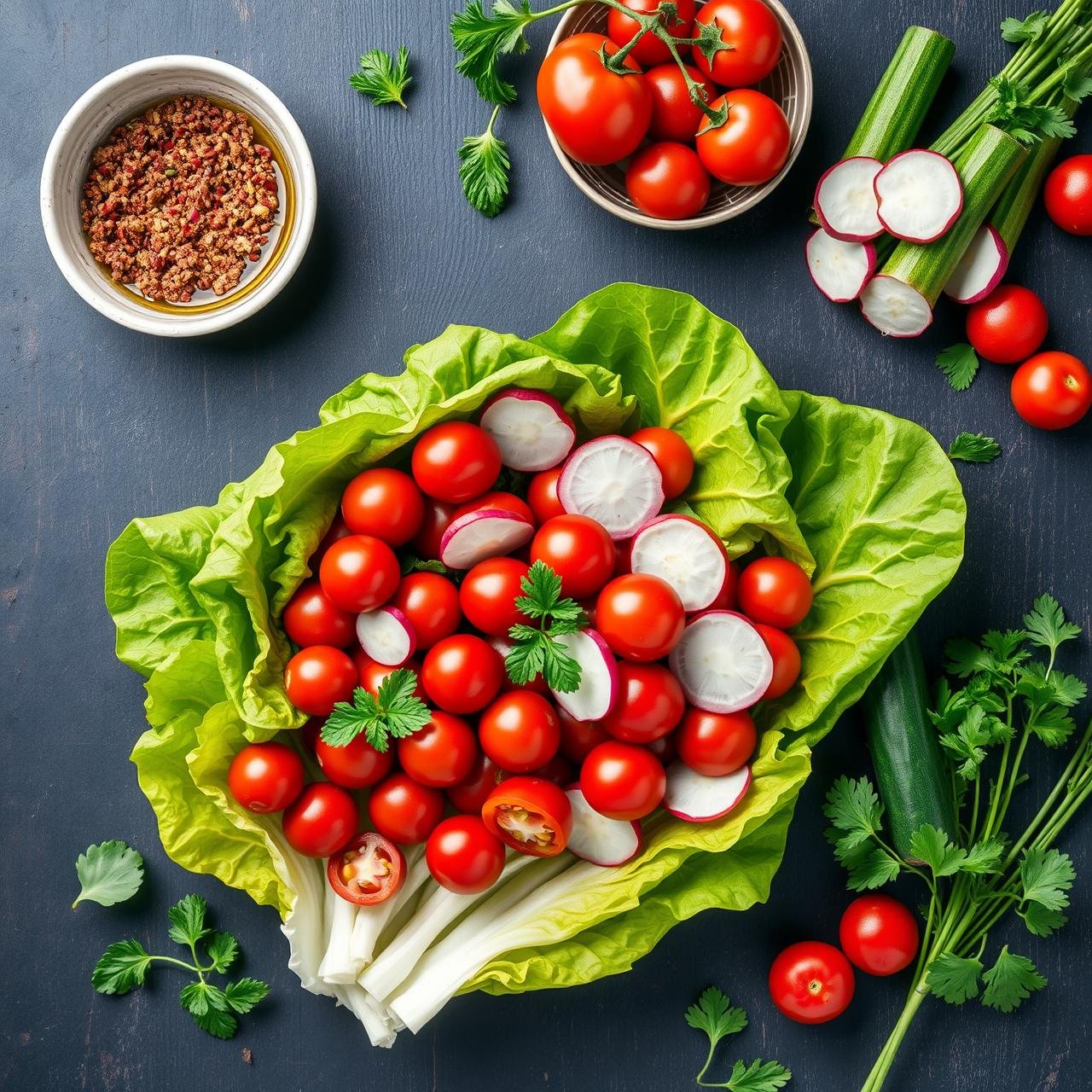 At its core, Fattoush is a ‘bread salad,’ a concept found in many rustic cuisines. The name itself comes from the Arabic word ‘fatteh,’ which means ‘crumbs.’ Traditionally, it’s a brilliant way to use up stale or leftover flatbread, which is toasted or fried until crisp and then tossed with a medley of fresh, seasonal vegetables. What truly sets Fattoush apart and gives it its signature Levantine character is the dressing. The star ingredient is sumac, a deep red, citrusy spice that imparts a bright, tangy flavor without the sharp acidity of lemon juice alone. Paired with fresh mint, parsley, and a quality olive oil, the dressing envelops every component, creating a symphony of flavors. Our version maintains this authentic soul but swaps traditional pita for a homemade low-carb alternative made from almond flour and psyllium husk. This ensures the salad is not only delicious but also aligns with a clean, health-focused diet, making it accessible to home cooks seeking nutritious yet flavorful meals.