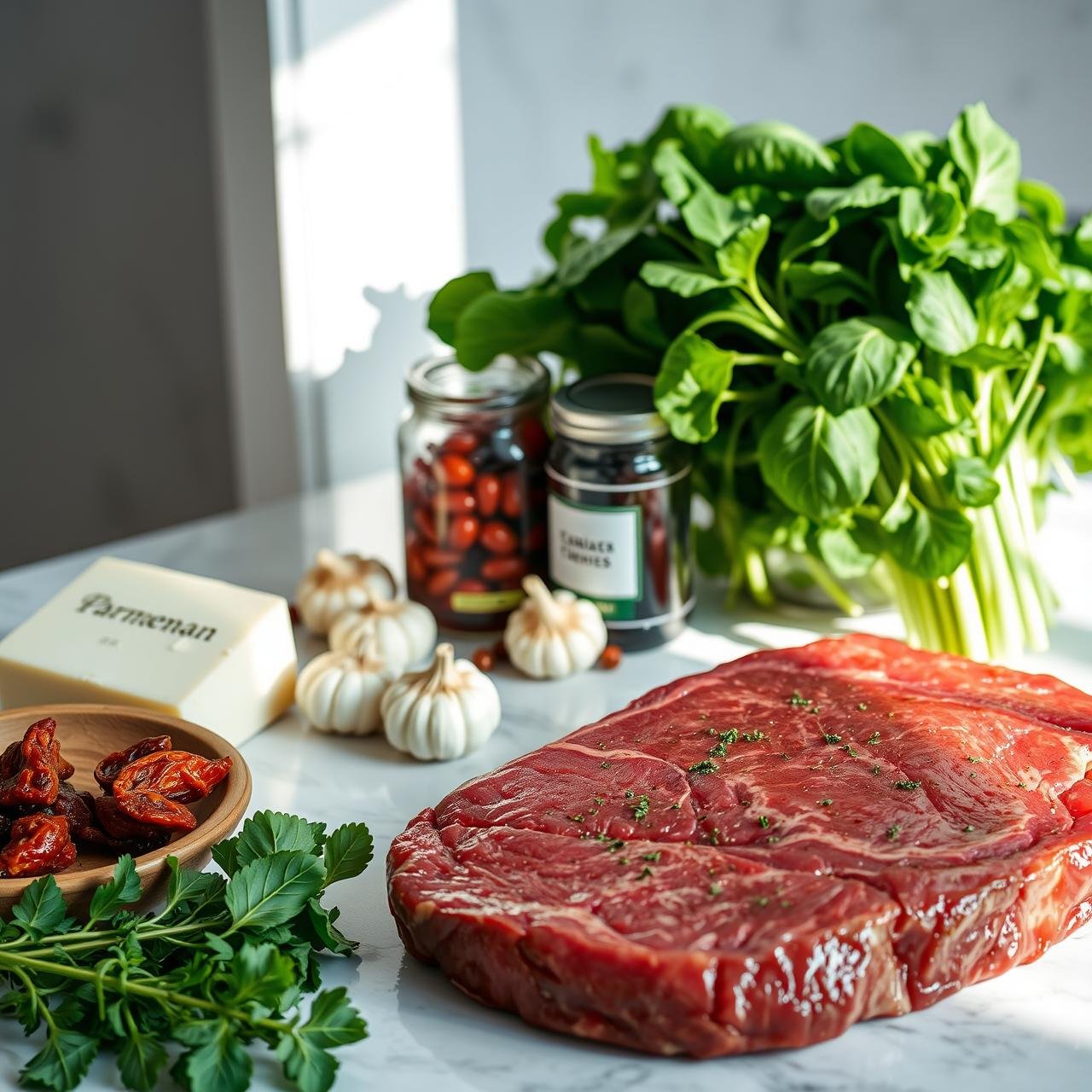 Before we dive into the heart of the recipe, let’s take a moment to appreciate our star ingredient: the flank steak. This lean, flavorful cut comes from the abdominal muscles of the cow. While it can be tough if not prepared correctly, its long muscle fibers make it the ideal candidate for butterflying and rolling. When you slice it against the grain, as we do with these pinwheels, you unlock an incredible tenderness. It’s a budget-friendly cut that, with a little technique, transforms into a gourmet experience. By pounding it thin, we not only tenderize the meat but also create a larger surface area, ensuring that every single bite is packed with that incredible garlic-spinach and cheese filling. This method turns a humble steak into a show-stopping centerpiece.