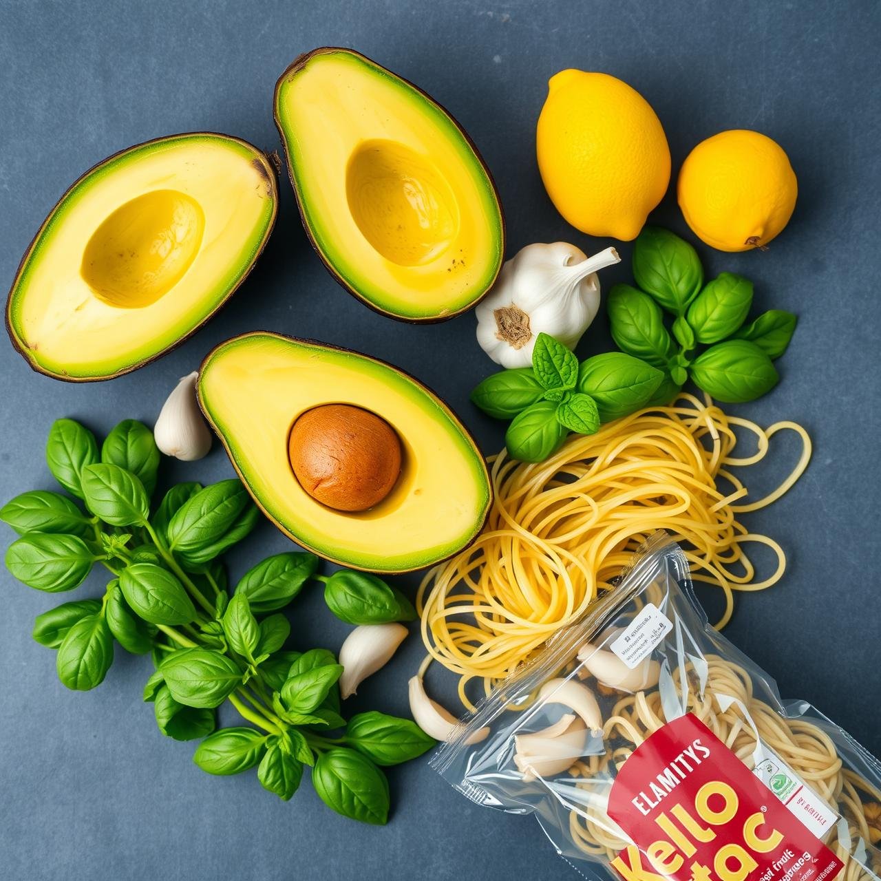 2. Craft the Avocado Sauce: While the noodles are soaking, combine all the sauce ingredients in a high-speed blender. This includes the flesh of the 2 large avocados, 1/4 cup of lemon juice, 1/4 cup of nutritional yeast, garlic cloves, 1/4 cup of water, sea salt, and black pepper.