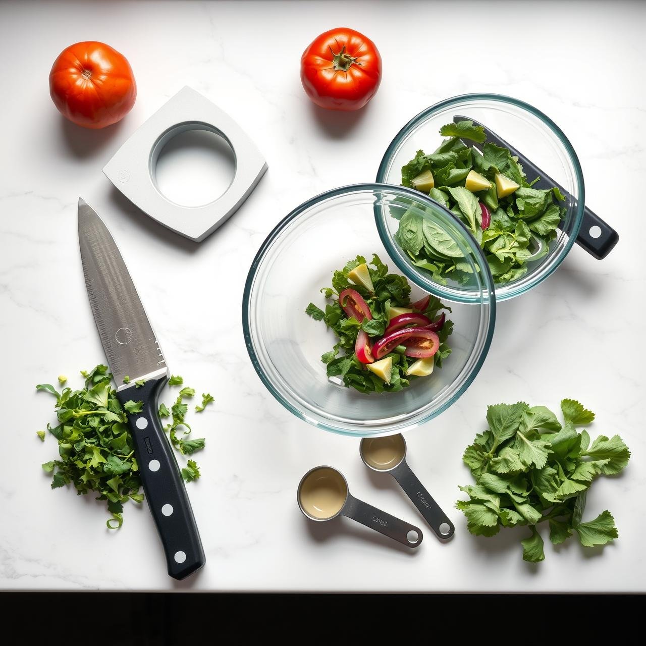 Large Non-Reactive Bowl Use a glass, ceramic, or stainless steel bowl. Reactive materials like aluminum or copper can interact with the vinegar, imparting a metallic taste to the salad.