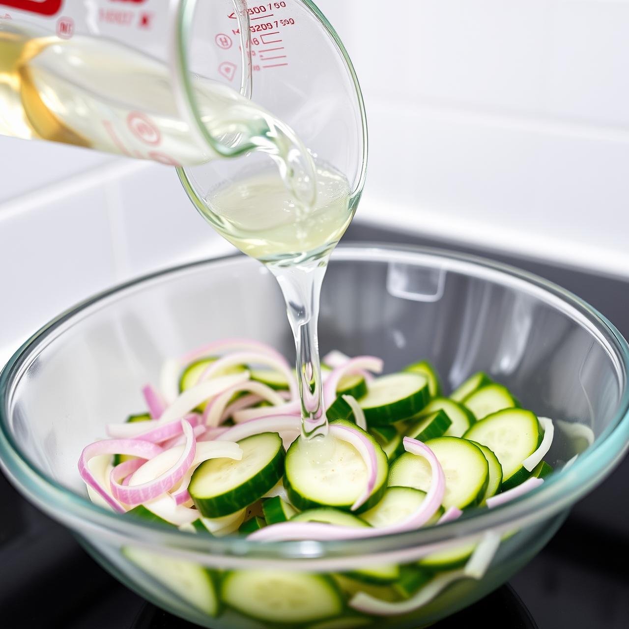 Return the thoroughly dried cucumbers and onions to your large, clean bowl. Pour the prepared vinegar brine over the top. Stir gently to ensure all the slices are coated. Cover the bowl tightly with plastic wrap or transfer the salad to an airtight container.