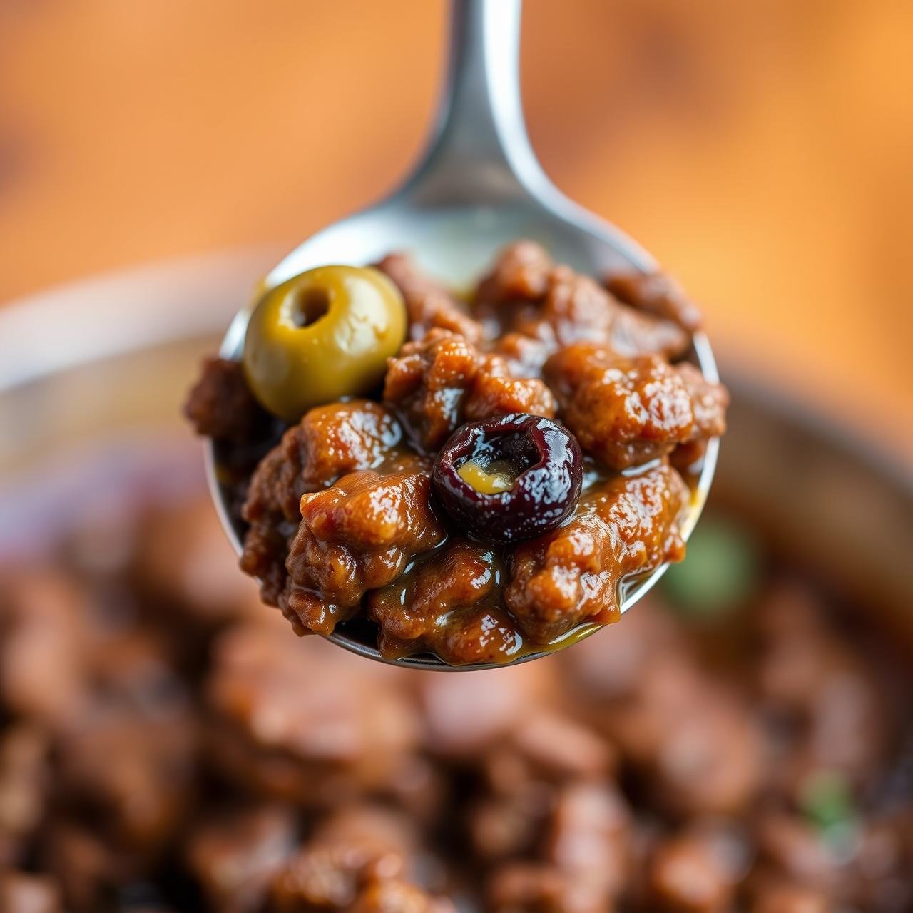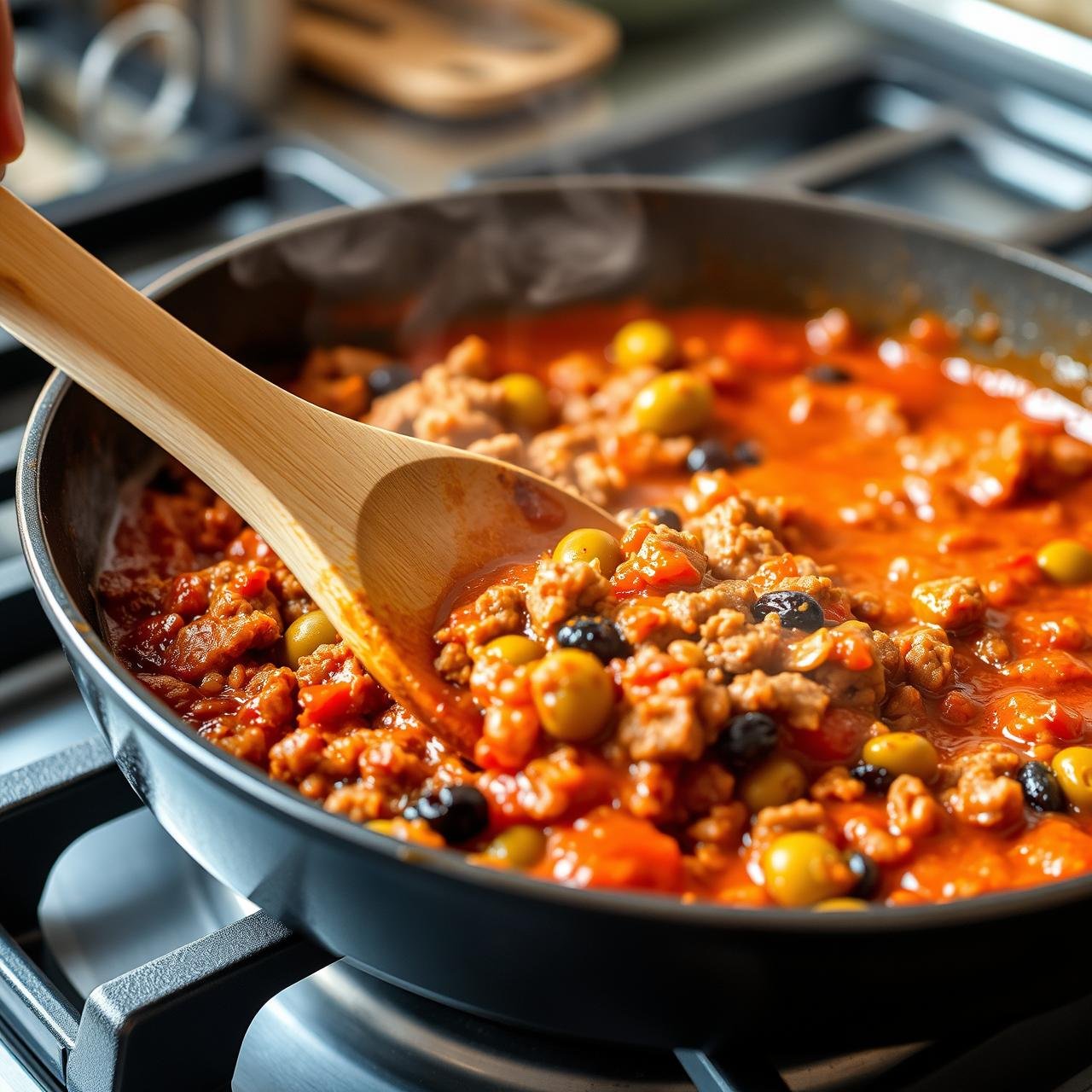 Bring the mixture to a lively simmer, then reduce the heat to medium-low. Stir in the chopped green olives and raisins. Cover the skillet and let it simmer gently for at least 15-20 minutes, allowing the flavors to meld and the sauce to thicken. The longer it simmers, the more developed the flavor will be.