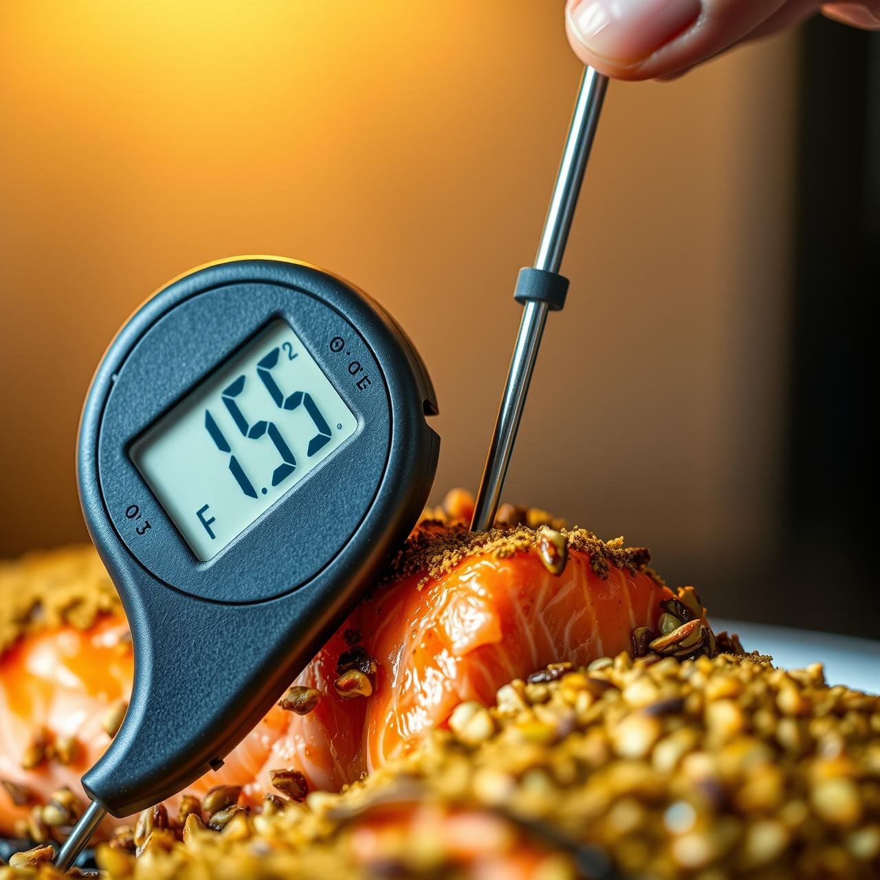 Place the baking sheet in the preheated oven. Bake for 12-15 minutes. The exact time will depend on the thickness of your fillets. The salmon is done when it flakes easily with a fork at its thickest part, or when an instant-read thermometer inserted into the center reads 135-140°F (57-60°C) for medium. The pistachio crust should be a beautiful golden-brown and fragrant.
