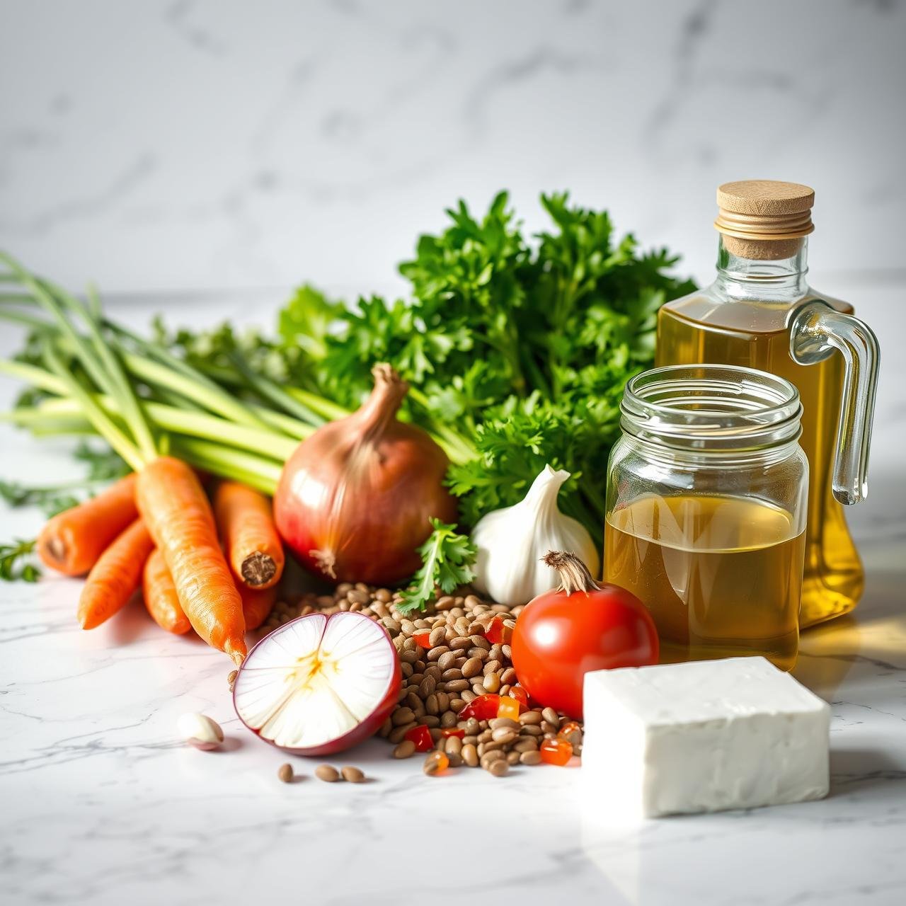 A classic French mirepoix—a finely diced trio of onion, carrot, and celery—forms the aromatic heart of this salad. Gently sautéed in good olive oil, these vegetables release their inherent sweetness and savory notes, creating a foundational flavor profile that infuses the entire dish. We also add garlic for its pungent depth and a bay leaf during the lentil cooking process for a subtle, herbal background note.