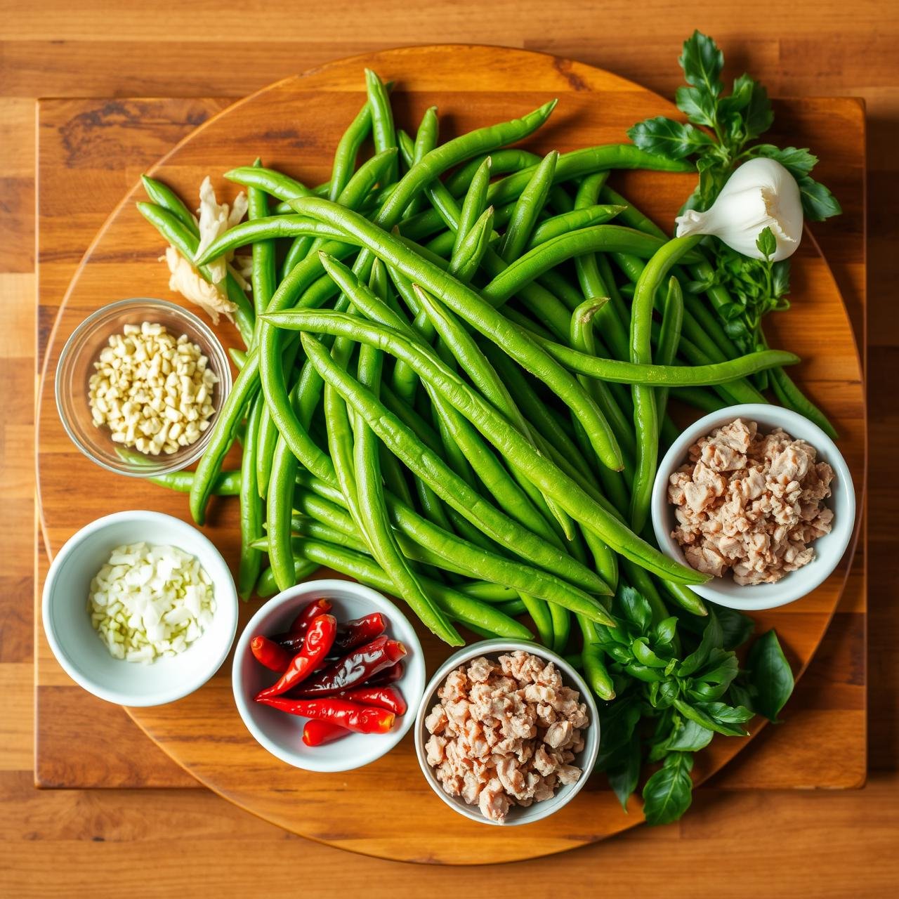 - 1 lb Fresh Green Beans: Look for beans that are firm, bright green, and snap easily. Thinner varieties like haricots verts work beautifully, but standard green beans are perfect too.