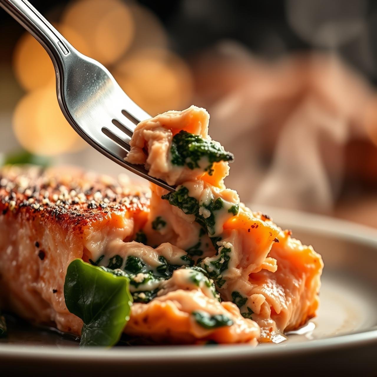 This recipe is more than just a list of instructions; it’s a lesson in technique and flavor building. We’ll transform humble ingredients like fresh spinach, cream cheese, and garlic into a filling so robust and flavorful it could stand on its own. We’ll learn the chef’s secret to cutting the perfect pocket in a salmon fillet, ensuring every inch is packed with that glorious stuffing. And we’ll master the art of baking it to that precise point of perfection where the salmon is moist and flaky, and the filling is warm and bubbly. This is a dish that nourishes the body with healthy omega-3s and vitamins while satisfying the soul with its rustic, homestyle comfort. It’s an impressive centerpiece for a dinner party, a wholesome weeknight meal for the family, and a budget-friendly way to indulge your inner gourmet. Let’s fire up the oven and bring the fine-dining experience home.