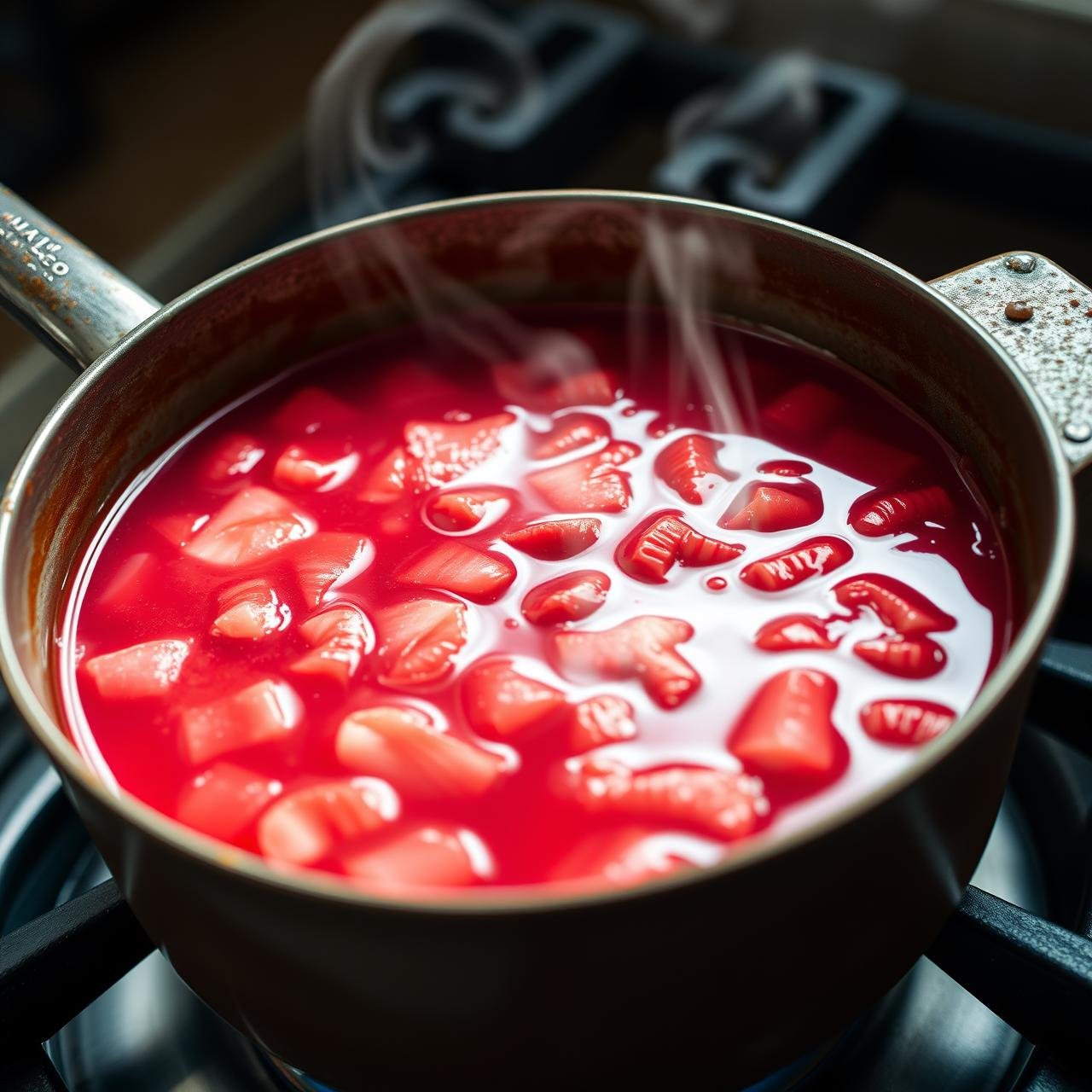 - Simmer to Perfection: Place the saucepan over medium heat and bring the mixture to a lively simmer, stirring occasionally. Once it’s bubbling, reduce the heat to low, cover the pot, and let it cook for 15-20 minutes. The rhubarb will begin to break down and release its juices, creating a thick, saucy consistency.