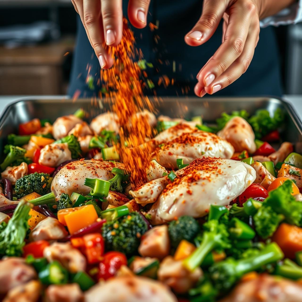 | Large Mixing Bowl | While you can season ingredients directly on the pan, using a large bowl ensures every single piece of chicken and vegetable is evenly coated in oil and spices, which is the secret to maximum flavor. |