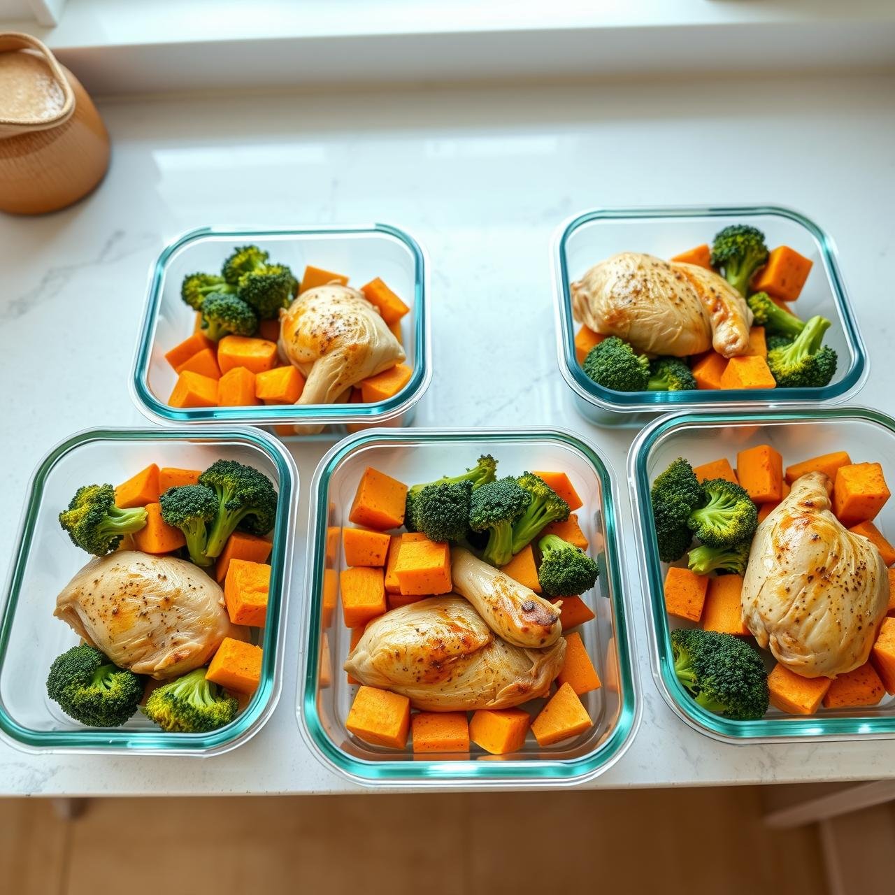 Divide the chicken and vegetables evenly among 4 to 5 airtight meal prep containers. Store them in the refrigerator, where they will stay fresh and delicious for up to 4 days. If you want to add a grain, you can place a scoop of cooked quinoa or brown rice at the bottom of each container before adding the sheet pan mixture.