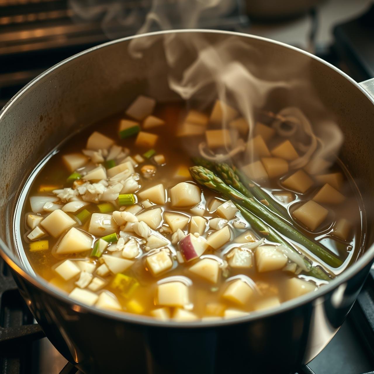 - Roast for Deeper Flavor: For a smokier, more intense flavor, toss the asparagus stalks and potatoes with olive oil, salt, and pepper, and roast them at 400°F (200°C) for 20-25 minutes before adding them to the pot with the broth.