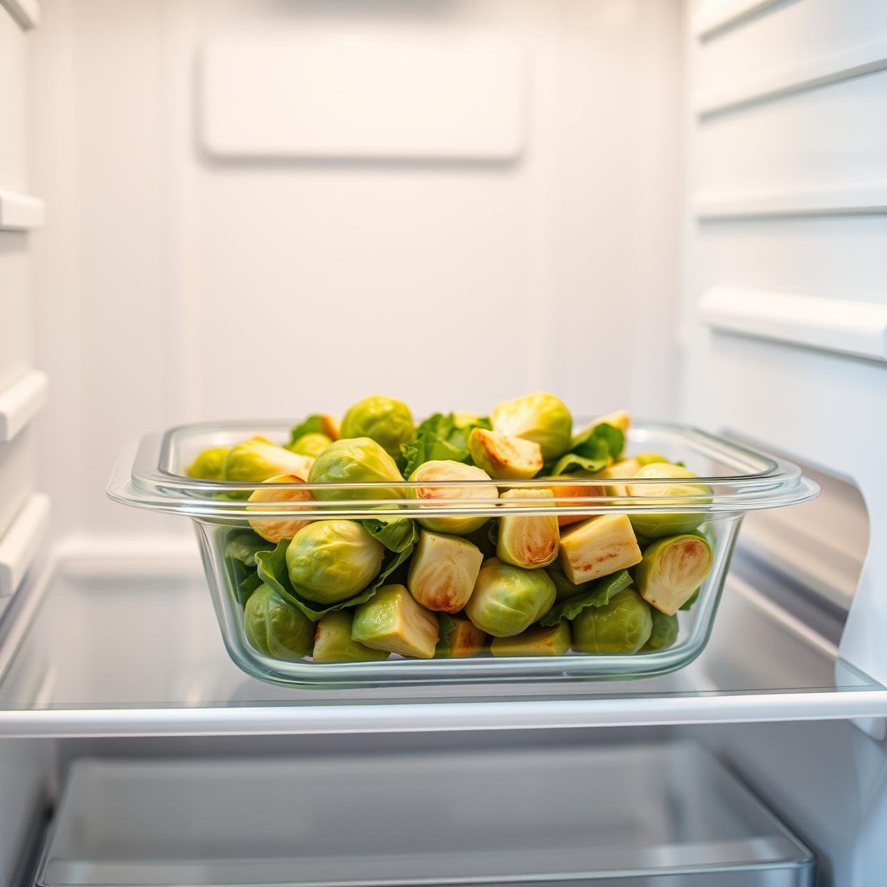 You have two options for leftovers. You can enjoy the salad cold, straight from the refrigerator, much like a marinated vegetable salad. The flavors are excellent. Alternatively, you can gently reheat it. For best results, spread the salad on a baking sheet and warm it in a 350°F (175°C) oven for 5-7 minutes, or until just heated through. Avoid the microwave, as it can make the sprouts rubbery and the nuts soft.