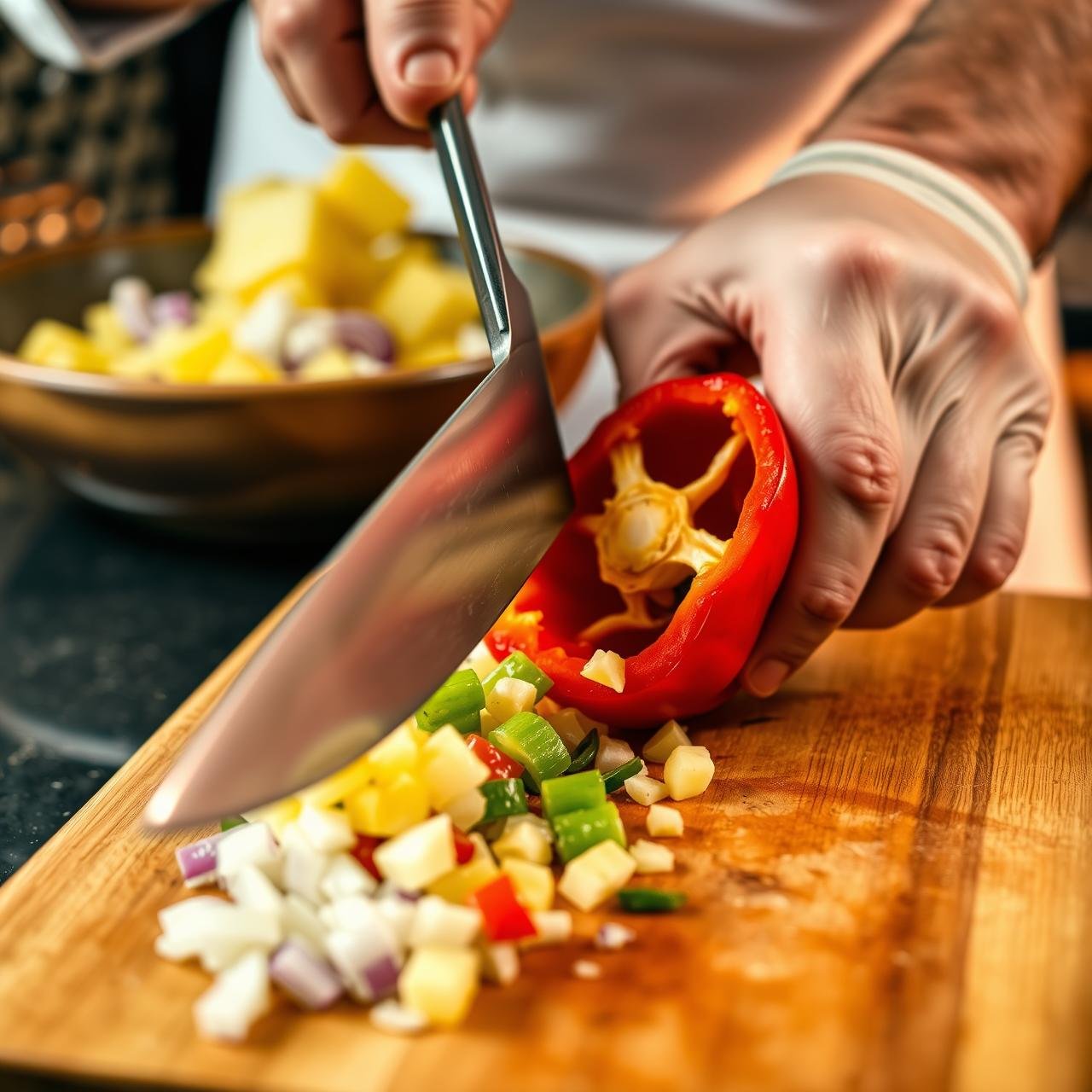 Follow these steps carefully to build layers of flavor and achieve the perfect texture. The key is in the uniformity of your dice and the patience to let the flavors marry.